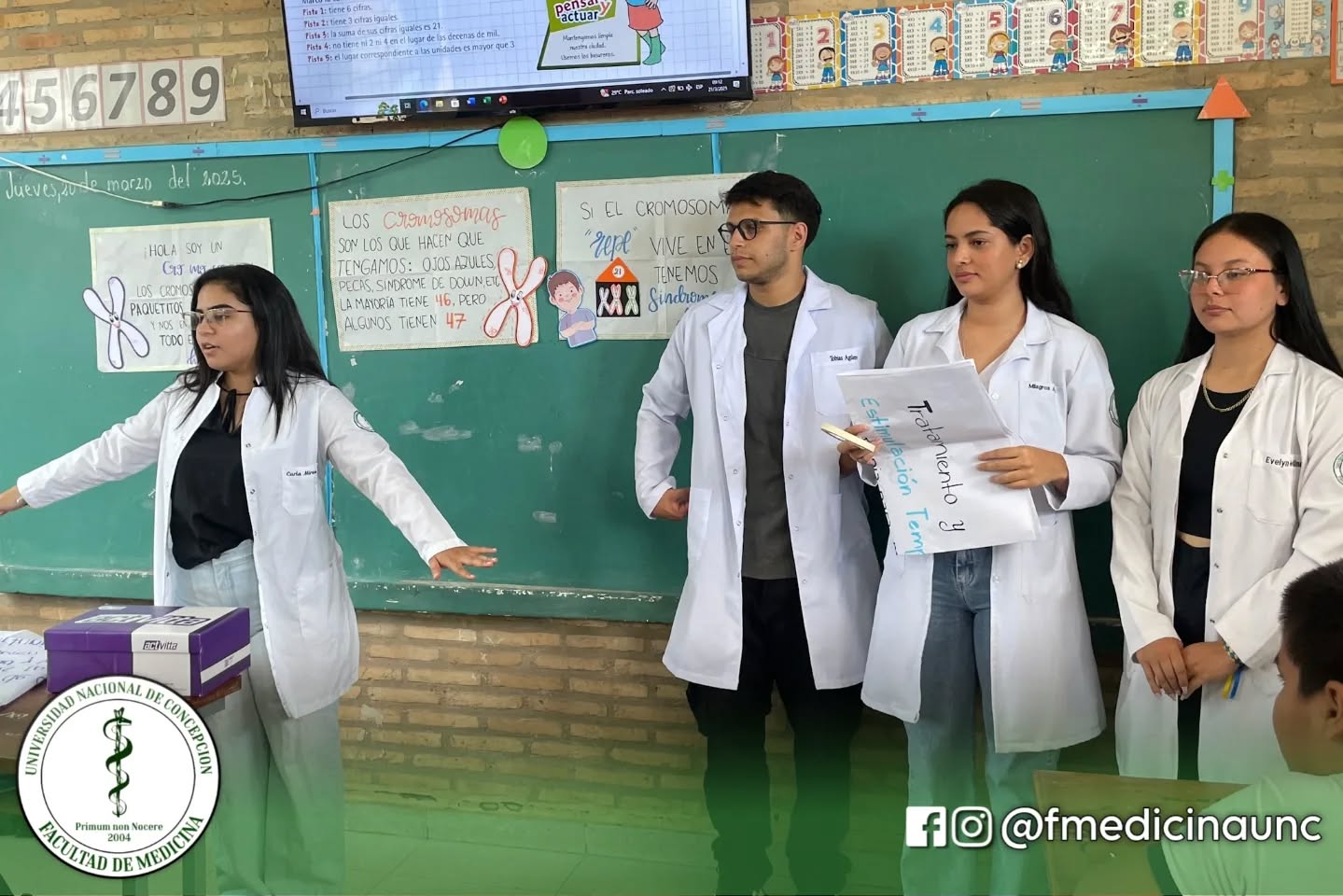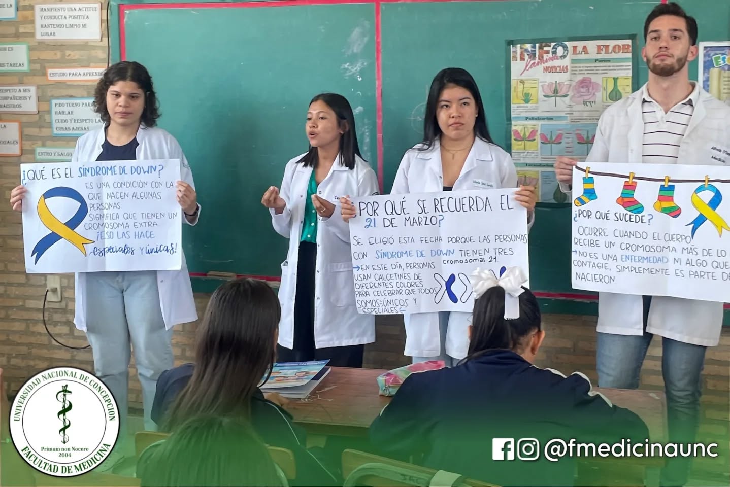✅ Con motivo del Día Mundial del Síndrome de Down, la Dirección de Extensión Universitaria y Vinculación Social de la Facultad de Medicina de la UNC organizó una charla inspiradora en la Escuela José de Antequera y Castro. Bajo el lema "Las llevo diferentes porque somos iguales", estudiantes del primer y tercer año participaron en una jornada educativa que promovió la inclusión y el respeto hacia las personas con síndrome de Down.